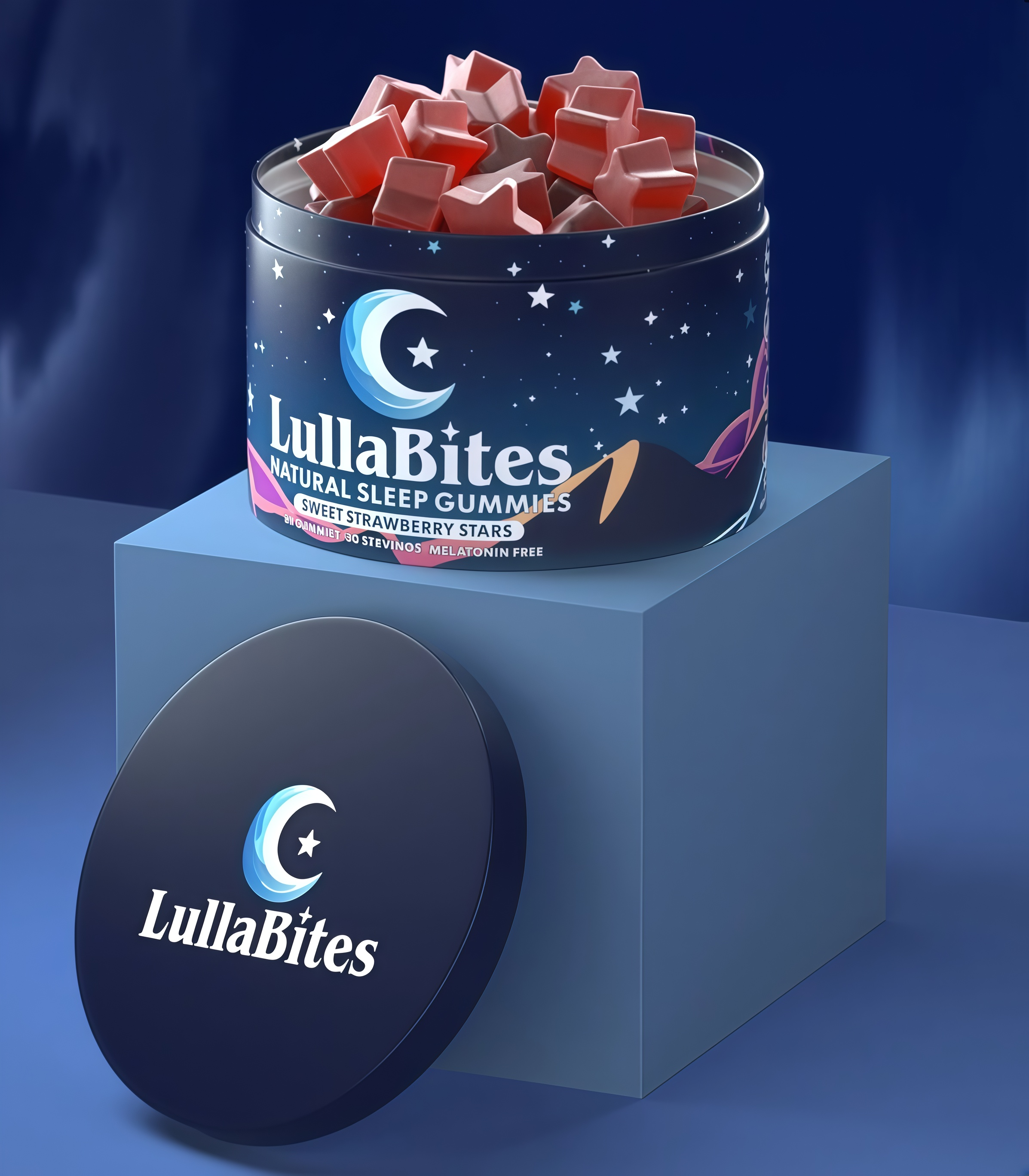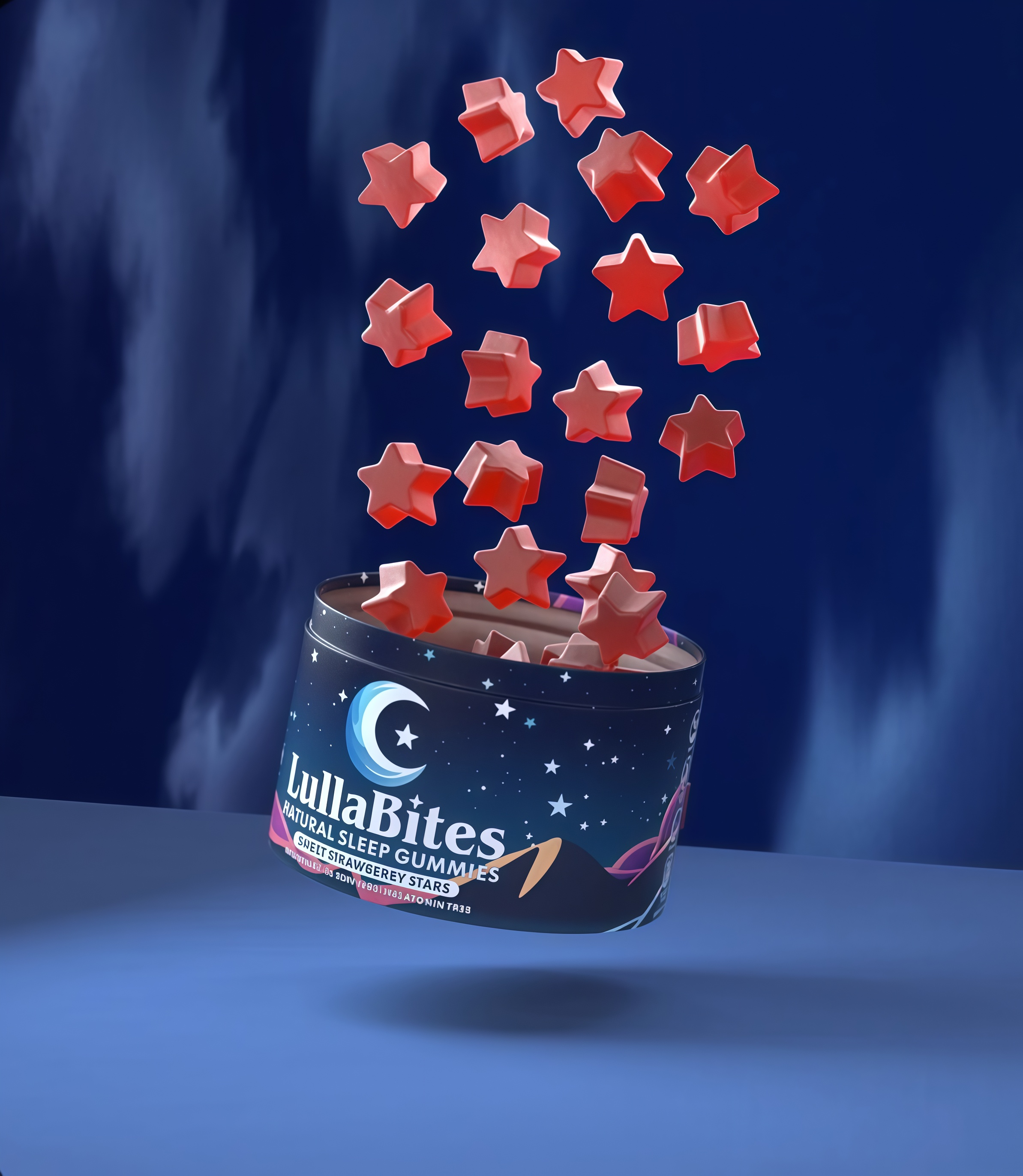 LullaBites – Your Pathway to Serene Nights! Discover the magic of restful sleep with our expertly crafted sleep gummies. LullaBites blend Valerian Root Extract, L-Theanine, Magnesium, and 5-HTP for a perfect journey into dreamland. Designed to ensure a peaceful slumber, LullaBites are your key to a restful night's sleep. With a delicious taste that turns bedtime into a delightful ritual, these gummies are the ultimate bedtime companion. Unwind, relax, and let LullaBites guide you to dreamland. Elevate your sleep, bid farewell to sleepless nights, and embrace the soothing comfort of LullaBites – where each bite brings you closer to tranquil sleep!
