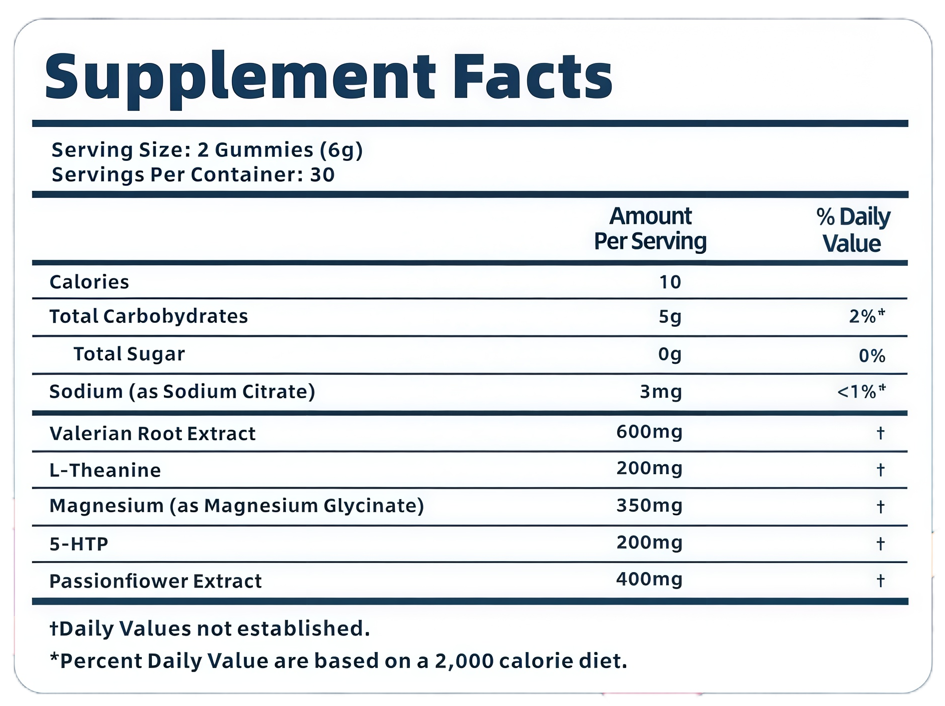 Tailored and natural blend designed to expedite falling asleep and enhance deep sleep.